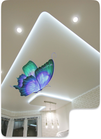 с декоративной подсветкой. Данное решение стало возможно в натяжном потолке
